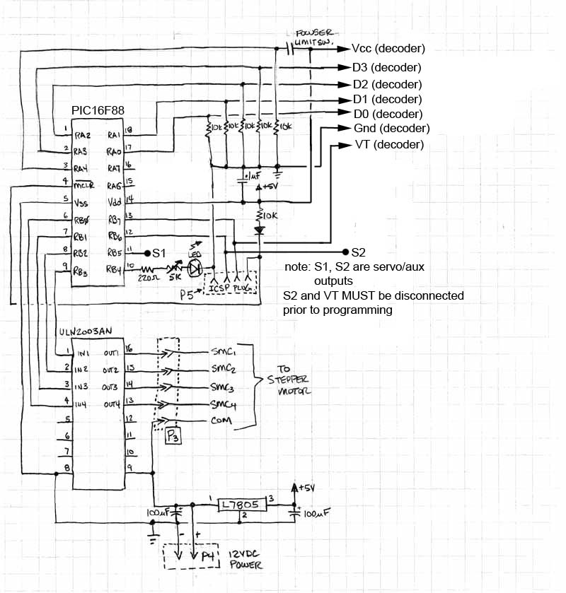 For a full description of the remote control functions, see the detailed comments at the beginning of the PIC program listing.
